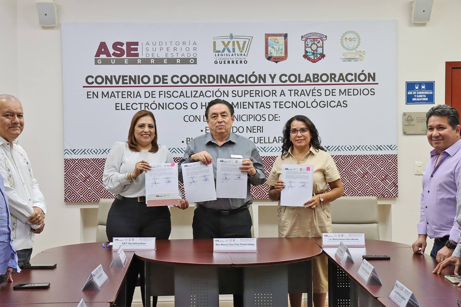 A la firma de este convenio asistieron el secretario de Finanzas y Administración del gobierno estatal, CPC Raymundo Segura Estrada; el titular de la Consejería Jurídica del Poder Ejecutivo, Jorge Salgado Parra; el secretario técnico de la ASE, Carlos Alberto Villalpando Milián, auditores especiales y titulares de área de este órgano.